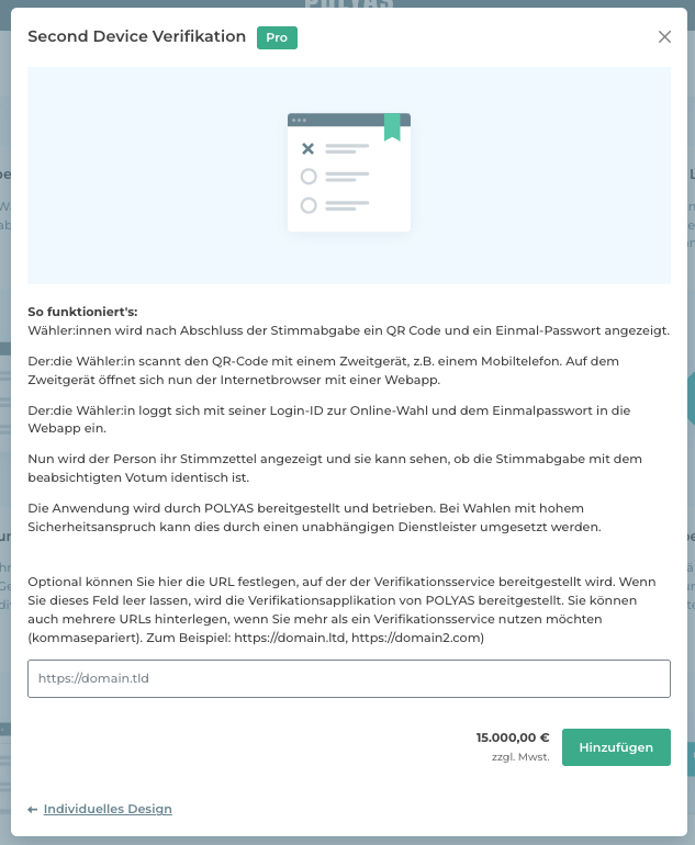 Sie können die Second Device Verifikation nur für verifizierbare Online-Wahlen aktivieren.